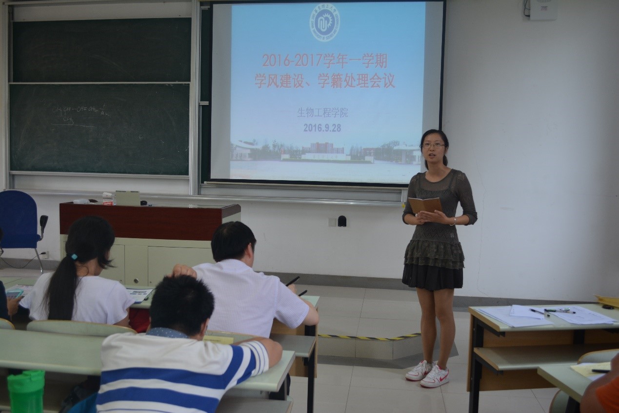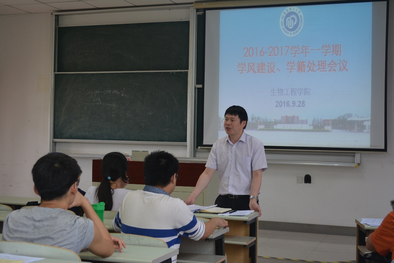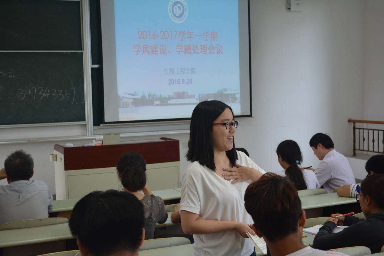 学院教学副院长王启要教授介绍此次学风建设会的目的和内容、学风建设的重要性及学风建设方式等,他指出学院教学方面在大家的共同努力下取得了较好的成绩,在生物工程专业认证、审核评估、教学改革项目申报、班导师管理等各项工作方面都显示出人妻