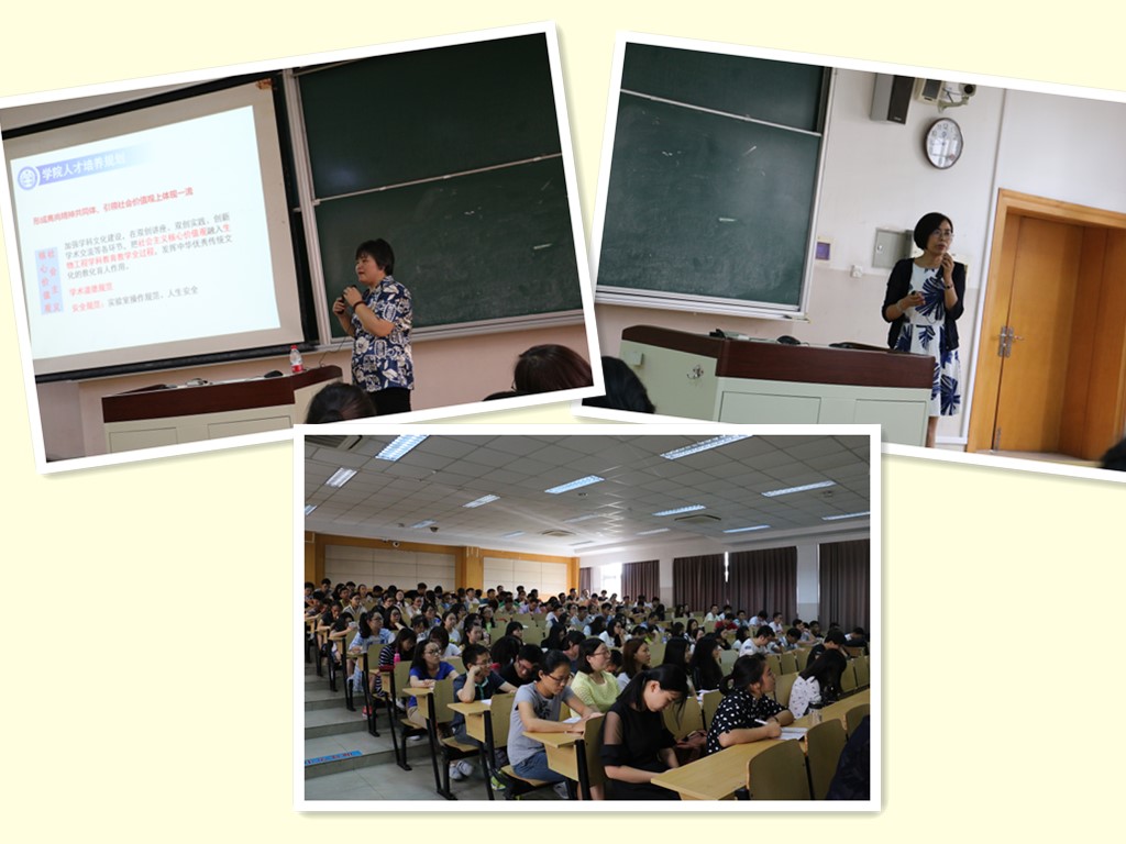 副院长卢艳花教授从实验室安全、人身财产安全、网络安全、正确处理好和导师关系等四个方面给同学们上了生动的一课。其中最重要的是实验室安全,卢老师主要从水、电、气、火、放射性物质、病原微生物、试剂、废液处置以及实验仪器操作等各方面进行了详细的安全教育。近年来,全国各大高校发生了多起重大事故,大多数是由学生在实验过程中的违规操作造成的,卢老师以实例教育研究生同学牢固树立安全意识,希望研究生要养成良好的实验习惯,熟悉实验仪器的操作。其次,卢老师在如何防范盗窃、诈骗,如何安全的使用网络以及如何处理同导师的关系等方面提出了具体的注意事项,并且给出了很多建议。另外,卢老师还对研究生的学制、课程设置及学习、中期考核、提前攻博、学位授予与论文要求、奖助学金的设置等事宜进行了详细的讲解。