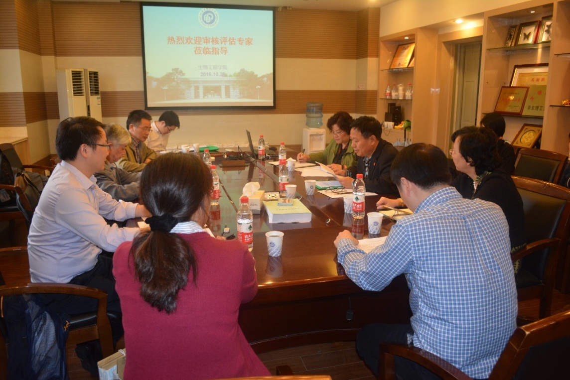 审核评估专家组预备会之后,庄英萍院长就我院目前本科教学各方面取得的成就、不足以及努力的方向做了汇报,学校教务处处长黄婕、副处长张先梅、学院党委书记陆兵、教学副院长王启要、各系主任、教务员、相关教师参加了会议。各专家根据审核评估的要求分工合作,对学院的本科教学进行了全方面的考察。专家们在陆兵和王启要的陪同下现场考察了学院的国家重点实验室。对学院院长、教学副院长、学工委主任等领导、专业责任教授、任课教师、学生等进行了访谈,对各专业的毕业设计和论文、试卷等支撑材料进行了审查。