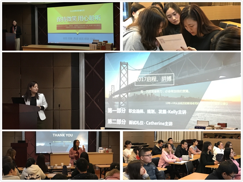 这是我院举办的“职”点迷津系列之“求职礼仪及技巧”讲座的最后环节,两位讲师是外企高级人事经理蔡雪凤和朱玉婷。讲座由人妻
