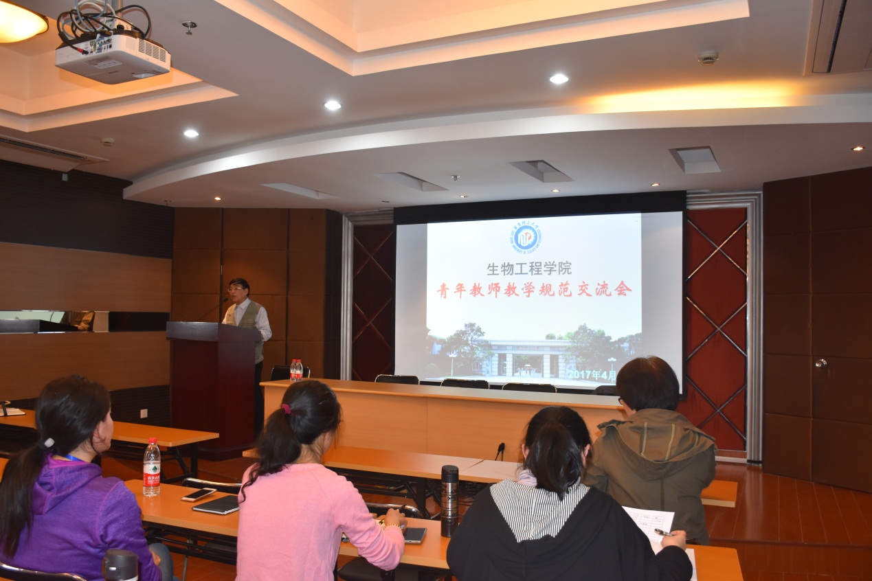 45日下午,我院邀请到应用生物学系第一任系主任金新根教授做客青年教师教学规范交流会,为青年教师做有关学科考试试卷的设计与评分规范的培训。副院长王启要、应用生物学系系主任吴海珍出席了此次交流会。
