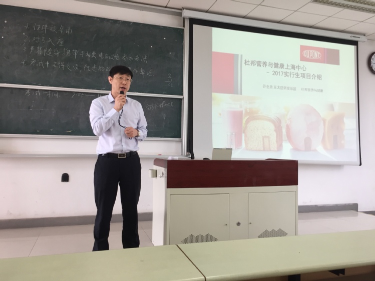 此次讲座邀请到了杜邦公司营养与健康事业部亚太区研发总监乔全胜和两名在杜邦公司进行毕业实习的13级师姐,李虹锐和黄珍同学。