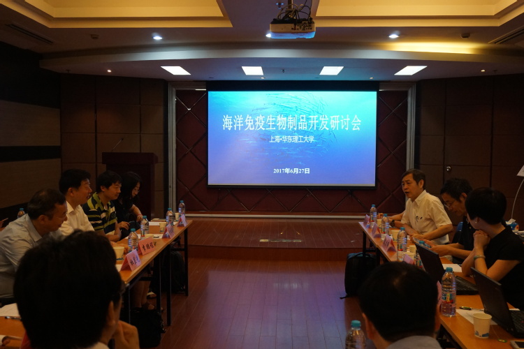 为贯彻落实国家海洋强国战略部署,针对新型海洋生物制品的研发需求,我院张元兴教授团队主持召开了“海洋免疫生物制品开发研讨会”。会议于2017627日举行,刘琴教授主持。校科学技术发展研究院常务副院长朱为宏教授、我院副院长王启要教授参加了本次研讨会并代表学校和学院发言。中国科学院过程所、中国科学院海洋所、中国科学院大连化物所、水科院黄海所、华南农业大学等单位的多位领域专家参加了本次研讨会。与会专家就海洋生物来源寡糖植物免疫调节剂开发、新型海洋生物疫苗开发等问题进行了深入探讨,也为积极申报2018年国家重点研发计划项目奠定了基础。