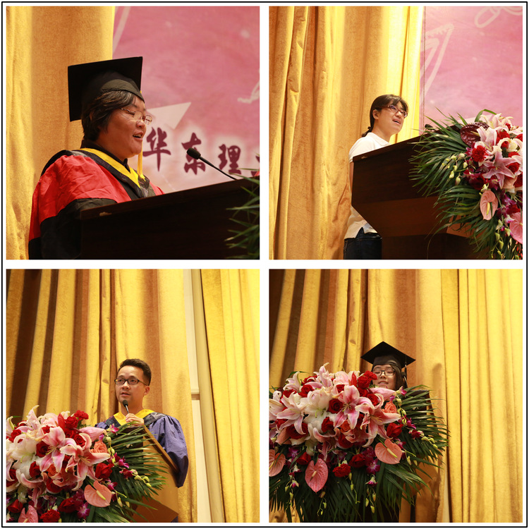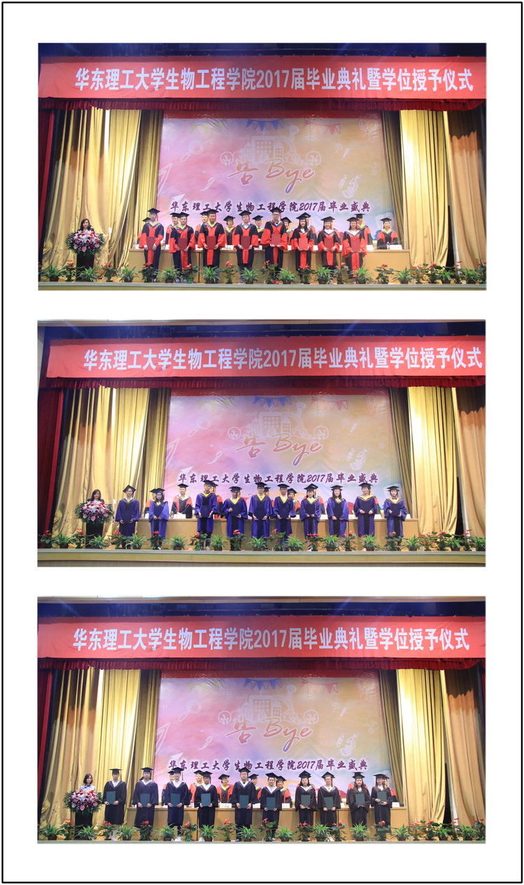 典礼上生工133班班导师高淑红代表学院教师向毕业生们表达了学院的浓浓惜别之情,“学院为同学们的成绩感到自豪,希望大家常回来看看,看一看学院的发展,再来品尝一下华理的红烧肉。”丁健健、姚溢融代表研究生、本科生毕业生发言,“分别,是为了下一次更好的相遇,老师们,同学们,我期待着与你们再度相逢”。随后,2017届毕业生们向人妻