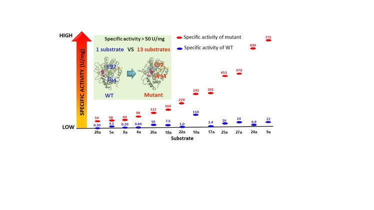 近年来,我国传统的化学化工及相关制造业面临着巨大的环保压力和节能减排的挑战,以工业酶为核心的生物合成技术,可以显著降低生产过程中的资源与能源消耗,减少污染物的排放,成为了企业创新驱动、转型发展、依法减排所亟需的的先进制造技术。然而天然来源的酶通常无法满足实际应用环境中的苛刻条件,因此需对其工业应用性能进行提升。针对野生型羰基还原酶CgKR1底物谱不够宽、催化活性不够高的缺陷,研究人员基于分子动力学模拟分析和长期的研究工作积累,推断出酶的底物通道上可能影响活性的两个关键氨基酸残基Phe92和Phe94;通过对酶进行结构改造,获得了一个对28种羰基底物催化活性显著提高的突变体CgKR1-F92C/F94W,并成功用于多种药物手性中间体的扩大制备。这一广谱、高效的生物催化剂为华东理工大学的工业酶库再添新的合成工具。据悉,许建和教授领导的生物催化与合成生物技术团队长期致力于羰基还原酶、亚胺还原酶、单加氧酶、环氧水解酶等工业生物催化剂的开发与应用研究,构建了一个包含千余品种的“千酶库”,努力为化学、化工、医药等行业客户量身定制高效、专一的酶催化剂及其相应的绿色合成工艺。