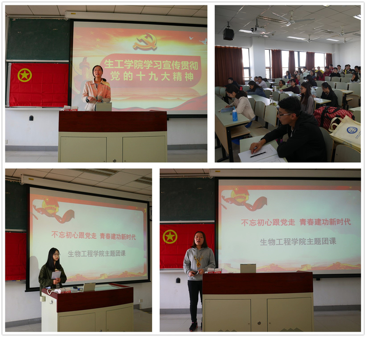 团委组织了一堂“不忘初心跟党走·青春建功新时代”的主题团课,大一至大三各团支部骨干相聚在奉贤校区D教,相互聆听与交流,共享了生工团支部建设的智慧,迸发了团学工作的新思路。