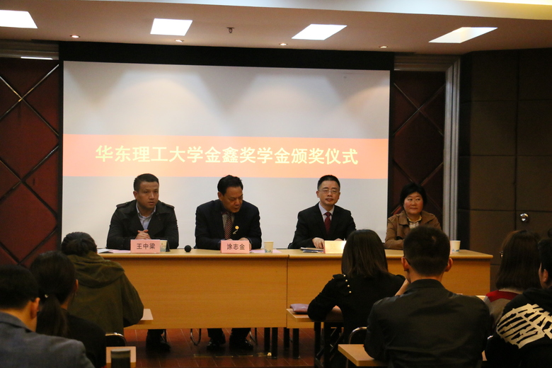 3月29日下午,“华东理工大学金鑫奖学金颁奖仪式”在实验十八楼315隆重举行。出席颁奖仪式的嘉宾有温州金鑫生化阀门有限公司总经理涂志金先生、副总经理王中梁先生、人妻