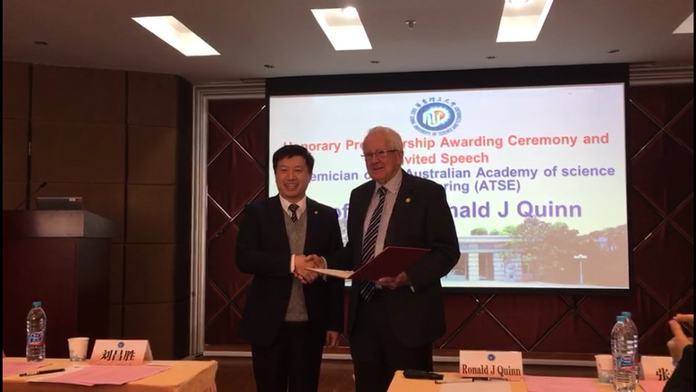 4月6日上午,澳大利亚科学与工程院院士、澳大利亚格里菲斯药物发现研究所Ronald J. Quinn院士受聘为人妻