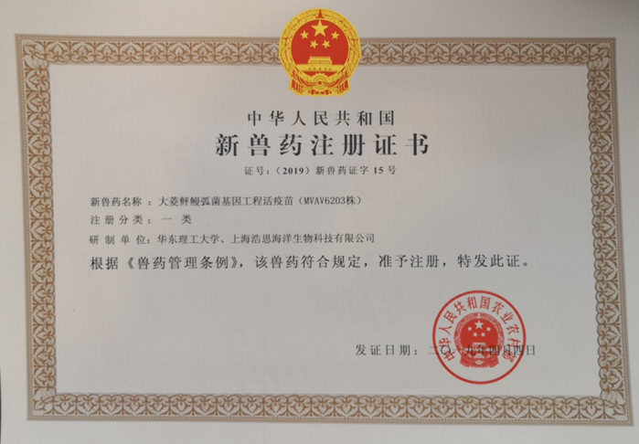 【创新前沿】历经十八载,我国鱼类基因工程活疫苗开发取得历史性突破 ——华东理工大学大菱鲆鳗弧菌基因工程活疫苗(MVAV6203株)获批国家一类新兽药