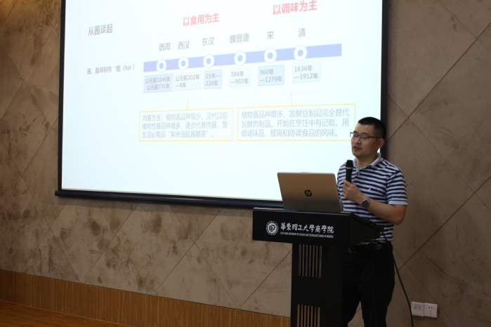华东理工大学荣誉校友郑宇教授作了题为中国调味品行业市场现状与发展趋势的报告,报告为我们分析了行业现状,以及未来调味品的发展趋势。目前调味品行业发展呈现的趋势有消费需求变化,催生了新的消费市场;产业结构调整,细分产业增长速度不同;调味品行业国际化进程加快等。郑教授还为我们重点分析了细分产业的发展状况,并为本次大赛提供了建议和思考。