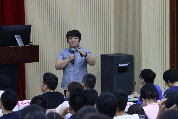 庄英萍院长从学院历史沿革、师资队伍、人才培养、科学研究等多个方面向新生们介绍了学院的基本情况,希望新生们坚定理想信念,形成高尚的道德情操,培养自主学习和合理安排生活的能力。