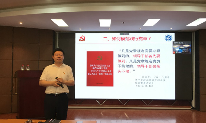赵黎明首先带领党员同志们庄严地举起右手,握拳宣誓,重温入党誓词。接着,回顾了党章的历史,从1847年马克思、恩格斯参与起草的《共产主义者同盟章程》讲起,为毕业生党员生动讲述党章的历史,强调全体党员要模范践行党章、维护党章的权威性。随后,又结合自身的工作经历,叮嘱毕业生党员要坚定理想信念,牢记共产党员的责任、担当与光荣使命,并向在疫情期间作出贡献的党员同志们表示感谢。