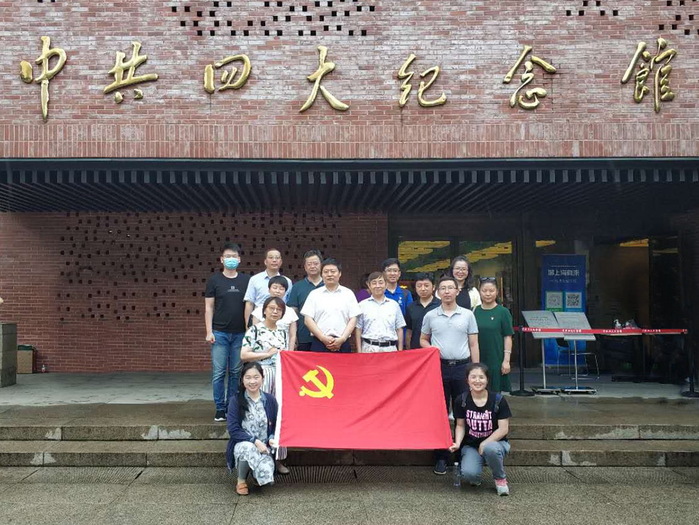 党委书记赵黎明的带领下,两支部党员、入党积极分子们首先在重温了入党誓词,随后依次参观了讲述四大召开历程的三个展厅。在“时局与形势”展厅,大家了解了中国共产党的诞生以及为推进国共联合战线建立和发展所做的努力,自此开创了革命新局面;在“筹备与召开”展厅,大家了解了中共四大召开的过程及主要成就;在“发展与高潮”展厅,大家了解了四大以后以工农为主体的革命群众运动的进一步发展历程。通过参观学习,支部党员更清晰了解了四大召开前后的历史环境,看到了中国共产党人对中国特色革命道路的不懈探索。