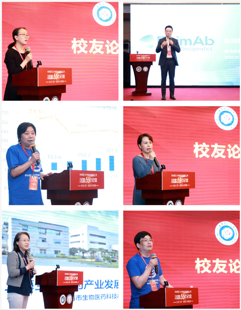 副院长郁惠蕾主持。校友上海岸迈生物科技有限公司董事长吴辰冰、天俱时工程科技集团有限公司副总裁兼生物医药事业部董事长丁之洁、上海恒瑞医药有限公司生物药部执行总监应华、上海市生物医药科技产业促进中心总工程师唐军和复旦大学教授张锋等和大家畅谈了生物工程行业的发展和未来的趋势,分享了自己的工作学习经历和收获。参会的其他校友也踊跃发言,表示校友与学院根脉相连、同心同德,会用共同的行动和集体的力量回报恩师的哺育、学校的滋养。