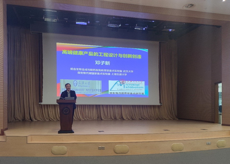 邓子新院士做了题为“高端健康产品的工程设计与创新创造”报告。他首先介绍了合成生物学助力发现和创造新型抗生素,破解抗生素耐药性方面的进展。然后以维生素E为典型案例指出合成生物学在革新和颠覆传统化工产业、发展绿色生物制造方面的重要意义。此外,邓院士还介绍了合成生物学应用于生产代表性高值产品的研发进展,这些产品包括来源于灵芝的抗衰老药物——寿因、唯一通过有机食品认证的杀虫剂——多杀菌素和抗癌明星分子青蒿酸等。
