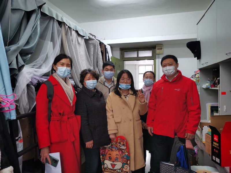 党委书记赵黎明、院长庄英萍、党委副书记左鹏、副院长郁惠蕾、研究生辅导员孙希彤、本科生辅导员邓亚珊等前往徐汇校区学生宿舍慰问寒假留校学生。