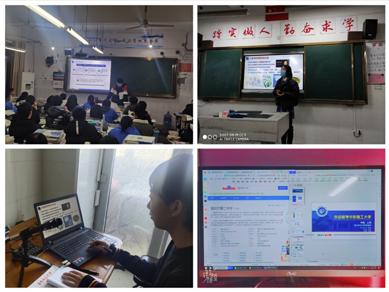 乡约华理情,感恩母校行。35支实践团队共75名生工学子通过线上线下相结合的方式重返母校看望恩师、宣讲华理,与学弟学妹交流学习经验、总结成长感悟、分享备考和报考志愿的心得体会,助力学校招生工作。1月28日,“与‘理’同行”实践团队成员赴各自的高中母校,对华理开展全面宣讲,介绍了自己在人妻