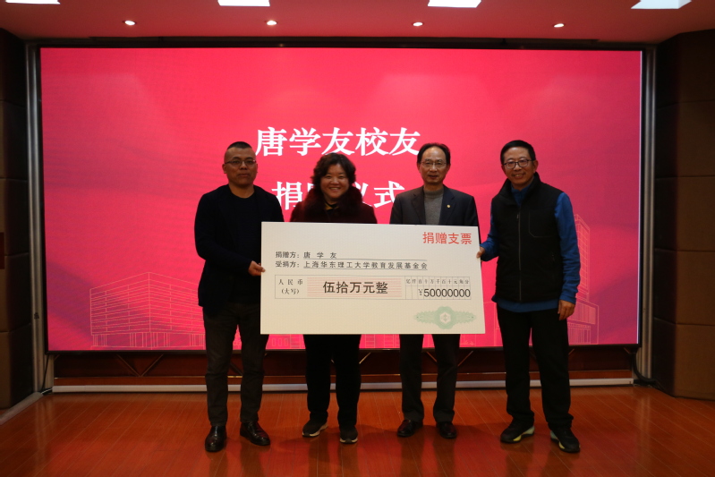 上海校友联谊会理事长黄予良、校友吴辰冰、唐学友及相关企业代表出席捐赠仪式。副校长李涛、校友与发展联络处处长李建伟、人妻