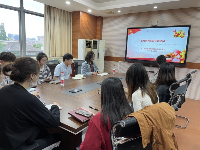 5月4日下午,国重室研究生第五党支部于实验十八楼302室开展主题党日活动,活动内容主要分为四个部分:拜读劳动模范事迹,分享读后心得体会;重温百年五四故事,牢记榜样意气风发;赓续先辈精神血脉,凝聚青年党员力量;主持人对活动总结发言。