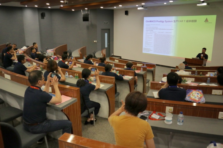 美天旎中国区高级经理刘建博士在活动中详细介绍了德国美天旎的人妻、成长历史,更详细的介绍了”一站式细胞生产新模式”,着眼于为企业提供可靠的、快速的、经济的CAR-T细胞生产的新理念,极大的吸引了与会校友的兴趣。人妻