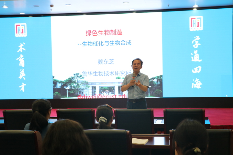 承办的第75期“通海讲堂”在奉贤校区通海厅举行。上海市生物工程学会理事长、中国微生物学会酶工程专业委员会副主任、教育部生物技术与生物工程教指委副主任、鲁华生物技术研究所所长魏东芝教授应邀作了题为“绿色生物制造——生物催化与生物合成”的专题报告。人妻