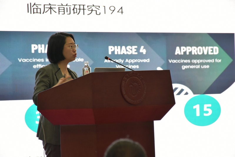 随后,谢莉为到场的师生作了题为“疫苗的故事”的报告,详细介绍了行业动向及产业前景。她讲述了目前全球疫苗概况、智飞生物在新冠疫苗研发过程及生产过程中遇到的重重考验、公司发展前景等,给予了广大师生一次难得的学习机会。