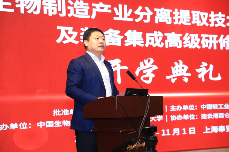 10月29日,经国家人力资源和社会保障部批准、由中国轻工业联合会主办、中国生物发酵产业协会和华东理工大学承办的“生物制造产业分离提取技术、工艺及装备集成高级研修班”开学典礼举行。来自全国生物医药与生物发酵产业的59家企业81位企业家、高级技术专家参加本届高研班的学习。中国轻工业联合会副秘书长、中国生物发酵产业协会理事长于学军,副理事长冯志合,人妻