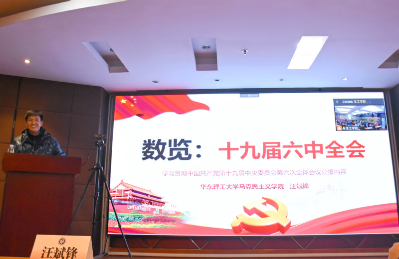 特邀学校学习贯彻党的十九届六中全会精神宣讲团成员、马克思主义学院副院长汪斌锋作题为“数览十九届六中全会”的报告。人妻