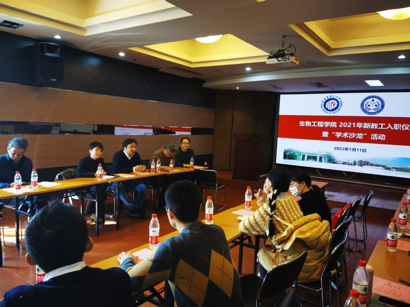 举办2021年新教工入职仪式暨学术沙龙活动。学院党委书记吴辉、副院长刘琴、党委委员许建和、工会副主席高蓓、生物工程系主任白云鹏、12位新进教职工,以及部分青年教师参加了此次活动。活动由工会青年委员范建华主持。