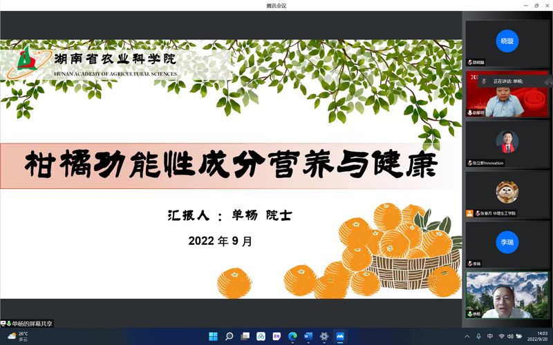 9月20日,应华东理工大学邀请,湖南省农业科学院院长单杨院士在线出席了华东理工大学70周年校庆报告活动暨第二十六期俊棠论坛。单杨院长作了题为“柑橘功能性成分的营养与健康”的学术报告,报告会由科学技术发展研究院院长赵黎明教授主持,生物反应器工程国家重点实验室主任张立新教授等近300名校内外师生在线聆听了报告。