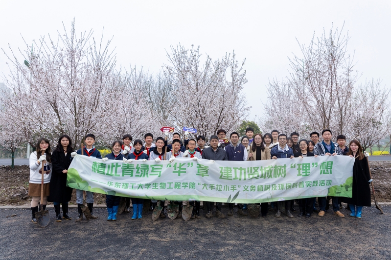 与奉贤区西渡学校在奉贤区团区委、西渡街道团工委的大力支持下共同开展植此青绿写“华”章,建功贤城树“理”想——“大手拉小手”义务植树及环保科普实践活动。奉贤区建设交通工作党委副书记张杰、西渡街道党工委副书记黄蕾、团区委副书记安法梁 (兼)、区建设交通团工委书记谢嘉玮、西渡街道团工委书记于薇、西渡学校大队辅导员董洁莹,学院党委副书记左鹏、学院团委副书记梁心怡、辅导员张佼、李静宜以及来自人妻