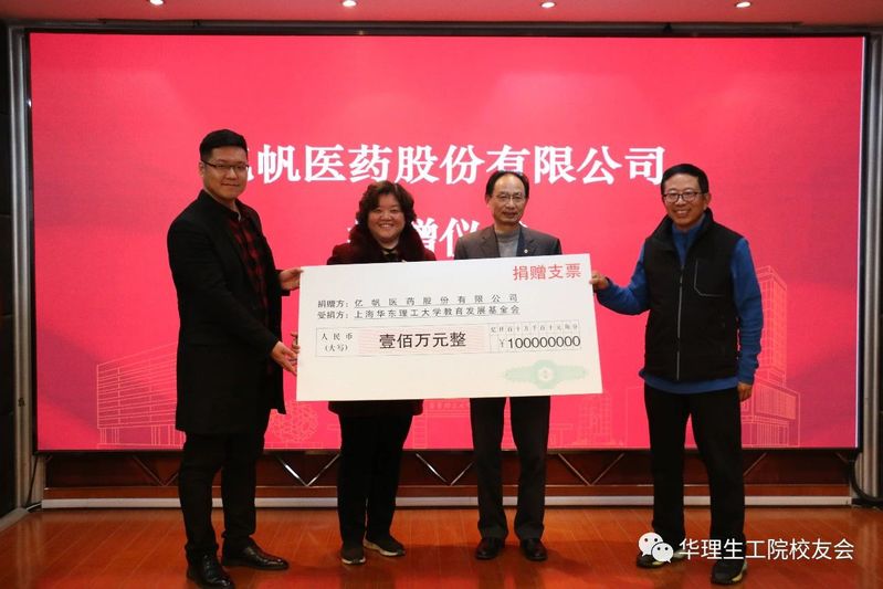 图片说明:亿帆医药向华理捐赠仪式上的黄予良(右一)