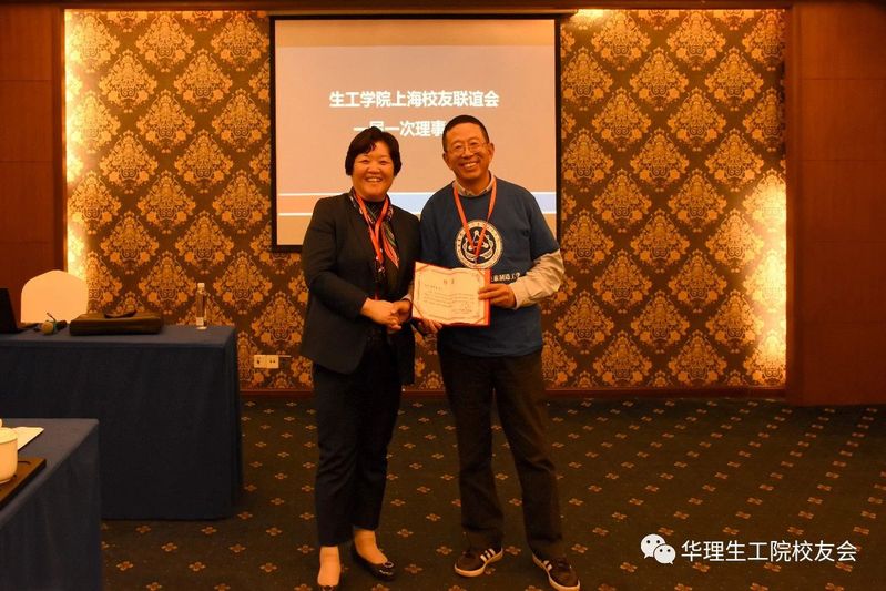 图片说明:受聘华理生工上海校友联谊会理事长