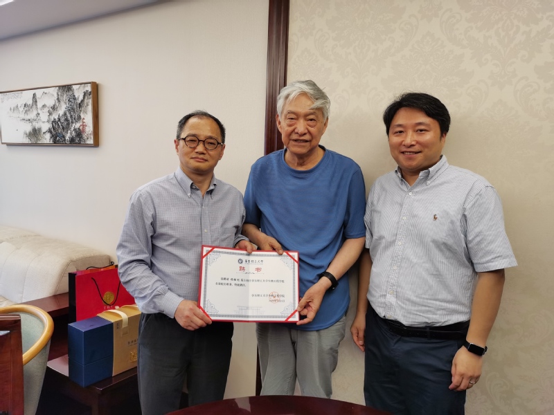 院长叶邦策、党委书记吴辉、鲁华生物技术研究所所长魏东芝教授一同看望了我院名誉院长杨胜利院士。叶邦策代表学院向杨院士多年来为学院做出的卓越贡献表示衷心感谢与崇高敬意,并向杨院士颁发了聘书。