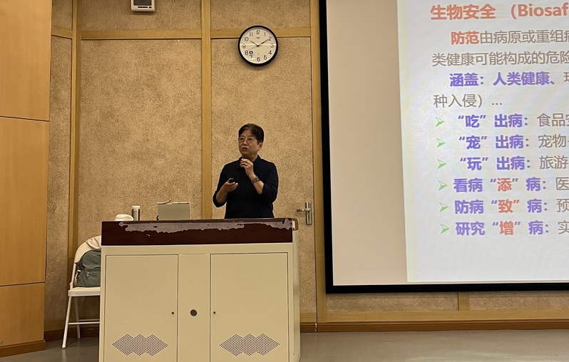 瞿涤教授以“生物安全法与实验室生物安全风险管理”为主题进行讲座。向同学们介绍了生物安全相关法规、实验室风险管理、询证管理等内容,并结合生动的例子介绍了实验室操作中的各项标准、注意事项以及法律法规。