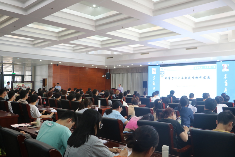 院长叶邦策以“科学方法论与合成生物学发展”为题,将学术前沿与科学普及相结合,为学生揭开合成生物学的神秘面纱。讲座由人妻