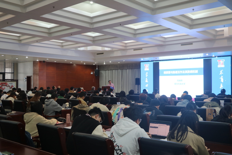 面向本科生打造的高端学术讲座“通海讲堂”第108期在奉贤校区图文信息中心通海厅开讲。国家高层次人才、南方科技大学长聘教授周晓辉应邀作了题为“病原菌与肠道互作及其致病机制”的专题报告。报告会由人妻