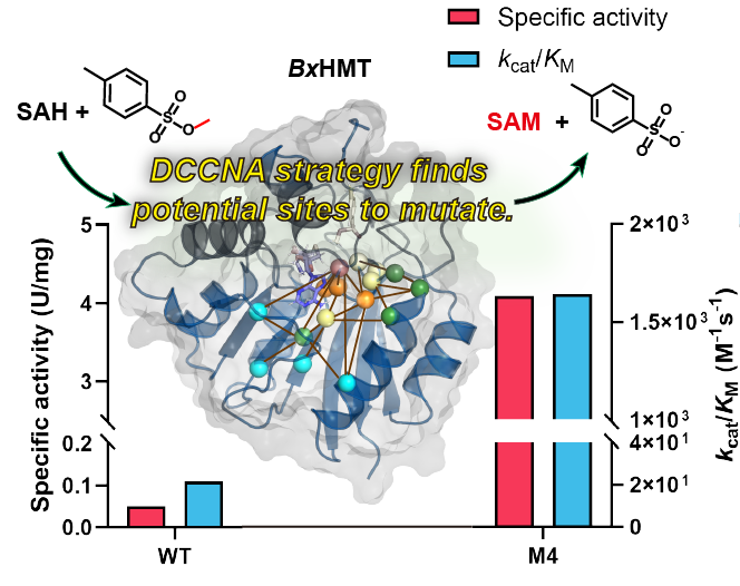本研究提出的DCCNA策略有效解决了过去长期存在的酶工程技术难以识别远端突变位点的问题,并可以大幅减轻筛选工作的负担。BxHMT-M4催化性能的显著增强也为非天然底物的有效利用带来了巨大的希望。因此,这一突破为HMT与MT级联的甲基化反应的更广泛应用奠定了坚实的基础。