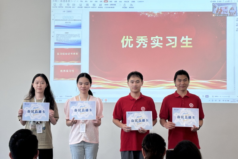 经过前期选拔共有13名本研学生通过此次暑期实习项目面试,在公司进行了为期三周的实习实践,并于8月9日的实习结业仪式上就实习期间的收获与感悟进行汇报。企业带教导师分享了自身的带教感触,对实习学生工作能力和专业技能做出肯定,各部门主管也就同学们的实习和答辩表现进行逐一点评。