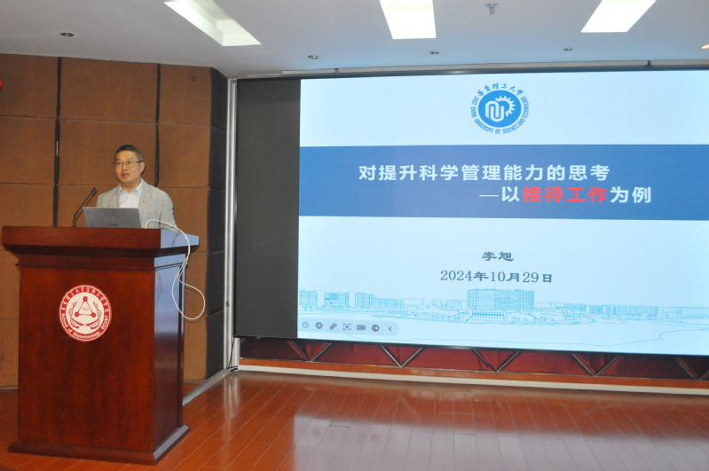 举办管理能力提升专题培训,学院党委副书记兼纪委书记李旭以“对提升科学管理能力的思考——以接待工作为例”为题,为参会人员带来一场实用性很强的讲座。