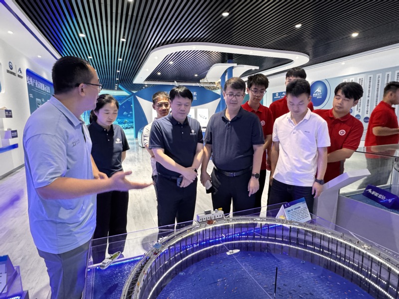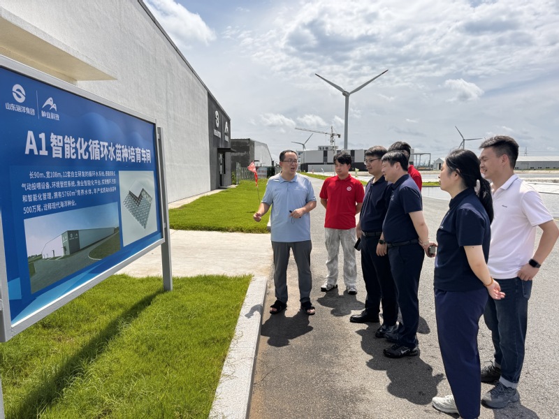 党委书记程家高带队,党委副书记孟庆鹏、副院长王启要,教师代表马悦、刘晓红及学院本研学生组成的“海韵生工”助企惠渔实践团,赴莱州明波水产有限公司开展深度调研。这支融合了学科专家、骨干教师与青年学子的科技实践团,深入物联网亲鱼车间、AI种业基地等产业核心区,实地解码海洋牧场作为“蓝色粮仓”建设主力的创新基因。
