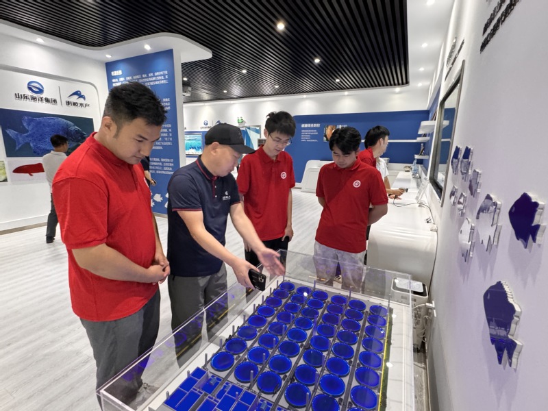 实践团第二站来到中国北方海洋种业繁育基地。在AI智能化循环水育苗车间,团队成员直面水产种业生产最前沿。借助水下视觉识别系统,鱼苗生长状态与环境参数得以实时监测与调控,有效助力石斑鱼、斑石鲷等名贵鱼种“类自然”生长。企业正推进基因选育与智能仿生融合攻关,为水产种业注入科技动能。