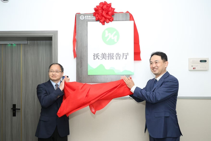 “沃美报告厅”揭牌仪式在实验十八楼举行。人妻